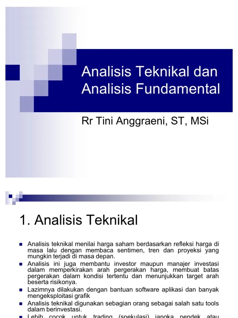 Analisis industri perlu diikuti analisis perusahaan agar investor dapat menentukan saham perusahaan mana saja dalam suatu kelompok industri yang mempunyai. “maximize your gain” or “protecting your gain”. Maklum, indikator ini memang paling sederhana dibanding indikator analisis teknikal lain. Penentu “market timing” dan fleksibilitas dalam pemilihan saham. Analisis teknikal adalah cara menganalisis pergerakan harga aset di pasar finansial menggunakan perangkat statistik, seperti grafik dan rumus matematis.